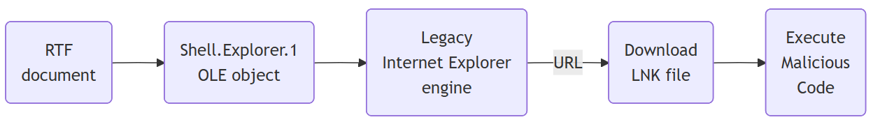 That legacy web browser engine is much less strict and secure than recent Windows features, and this is the core problem. In the malicious samples that have been discovered, the URLs point to LNK files, which are automatically executed without prompting the user, and then any malicious payload can run.